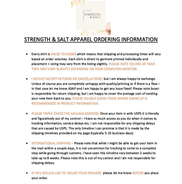 * Please review all store + shipping policies and frequently asked questions before placing your order (and please double check your shipping address!)